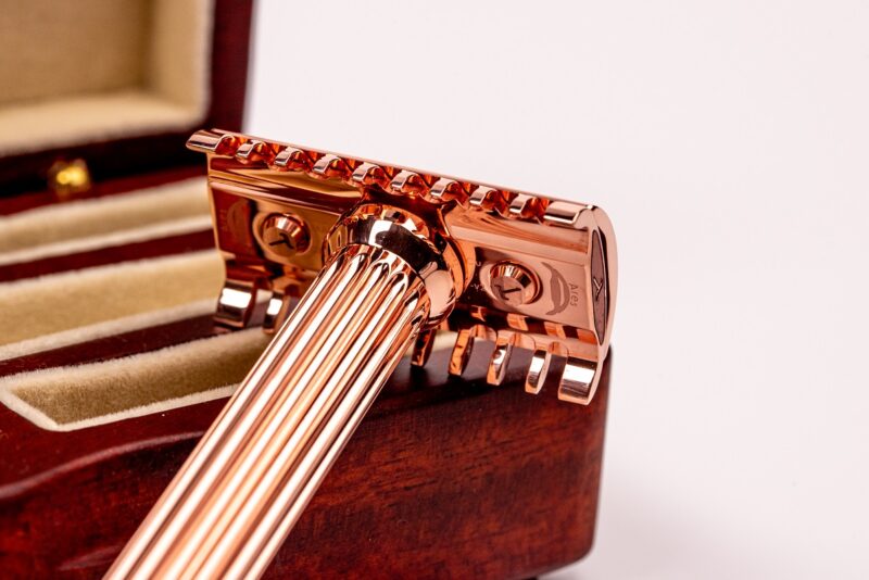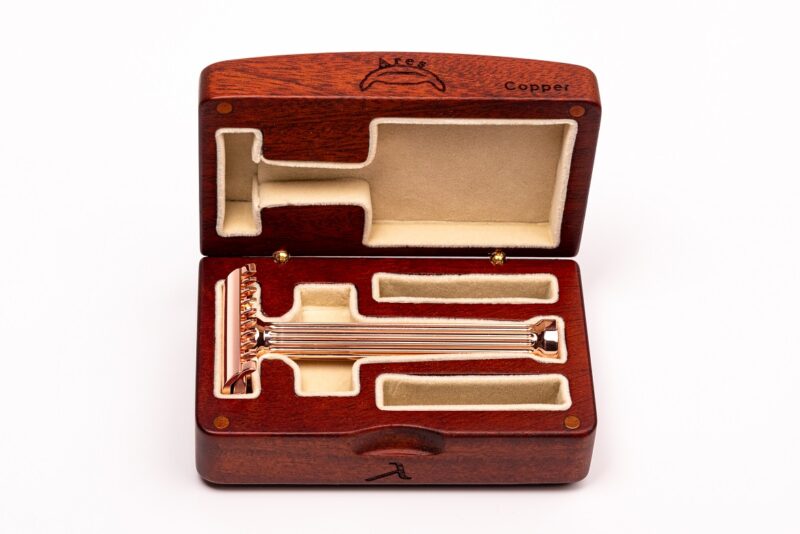 In reality, the Ares is even less aggressive than the Athena, despite its "menacing" R41-like appearance. It has a smaller blade gap and the same neutral blade exposure as the Athena. Another magnificent razor from the Master, now in a copper version. Thank you for the opportunity to experience such perfection.