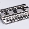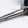 Beautifully polished machined titanium razor provides fantastic comfortable close head shave. Love it!